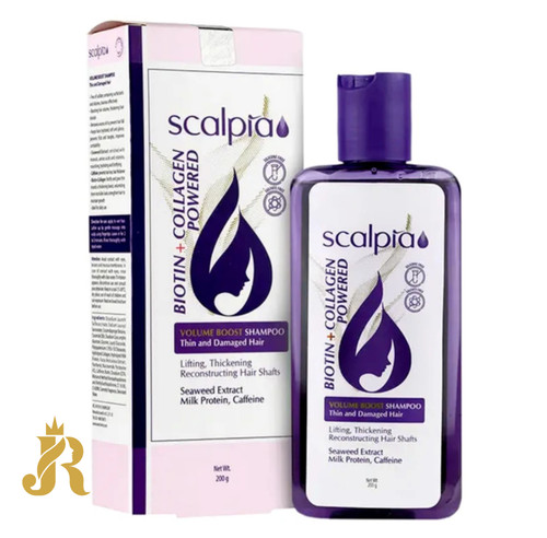 شامپو حجم دهنده مو اسکالپیا مدل بیوتین و کلاژن مناسب برای موهای نازک و آسیب دیده حجم 200 میلی لیتر