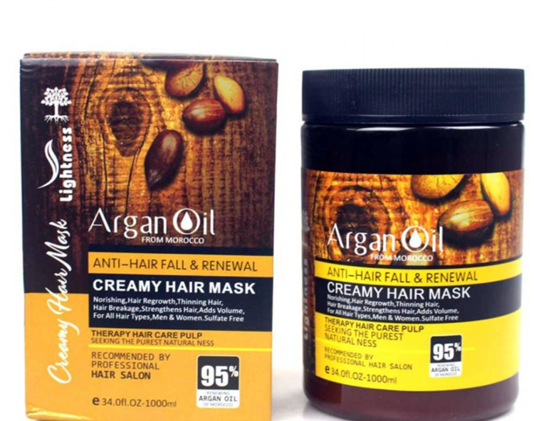 ماسک مو تقویت کننده لایتنس مدل Argan Oil فاقد سولفات مناسب انواع مو حجم 1000 میلی لیتر