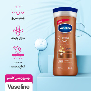 لوسیون بدن وازلین موجب درخشان و مرطوب شدن پوست بدن شما می شود. لوسیون بدن وازلین برای پوست های خشک بسیار مناسب بوده و به سرعت و به مدت طولانی پوست را نرم و مرطوب نگه می دارد. این لوسیون بدن ازبرند وازلین حاوی شی باتر ، آلوئه ورا ، کاکائو و همچنین ویتامین می باشد. این ترکیبات قادر است پوست را عمیقا مرطوب و درخشان کند. لوسیون بدن کاکائو وازلین، چربی اضافهای در پوست ایجاد نمیکند. به همین دلیل میتوانید از آن روزانه و بعد از هر بار استحمام استفاده کنید و نرمی و لطافت را به پوست خود هدیه کنید.