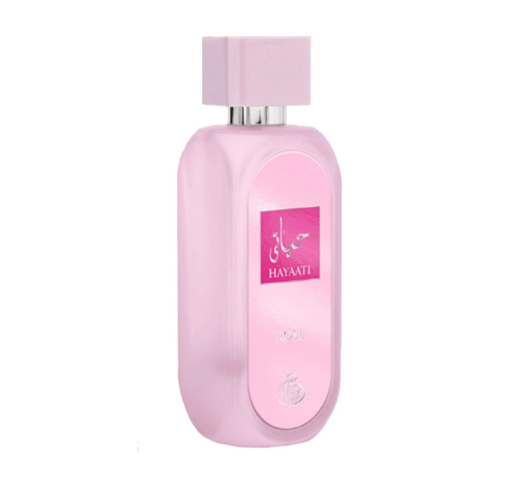 ادکلن فرگرانس مدل حیاتی رز رایحه حیاتی زنانه عطری است زنانه و جذاب با رایحه ای گرم و شیرین. ادو پرفیوم زنانه حیاتی Hayaati از گروه بویایی چوبی ، گلی ، میوه ای است. عطر ادکلن حیاتی زنانه عربی یکی از بهترین و محبوب ترین و پر فروش ترین ادکلن های شرکت فرگرانس می باشد و از کیفیت ، پخش بو و ماندگاری بالایی برخوردار است و مناسب خانم های جوان خوش سلیقه و شیک پوش می باشد.